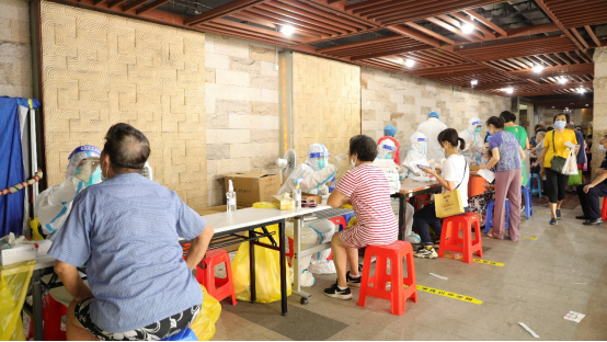 医护队伍到社区来,免去了群众的反复奔波,在医护队伍到达前,现场已排起了近百米的队伍。“不用我走上去,我站不了的。很感动,现在我们大中国真是让我们老百姓感动。”在社区,有较多行走不便的老人家坐着轮椅前来配合核酸采样工作。由于核酸采样点前有数级阶梯,为了让老人家少走动,医护人员就走下来为他们进行核酸采样。