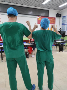 在支援的队伍里,还有许许多多的新员工、夫妻组合、闺蜜和好哥们儿。新员工当中,还有宋思琼、刘趣泳、宋宇婷、倪玲玲……夫妻齐上阵的,还有中医科罗学森和放射科李月娥、神经外科的尹海斌和护理部刘靖萍、中医科周三林和工会李微……