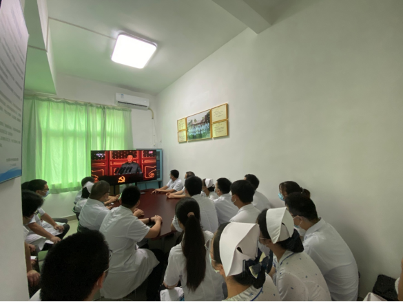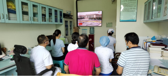7月1日,中西医结合医院组织近600名教职员工,分设11个会场收听收看庆祝中国共产党成立100周年大会现场直播。