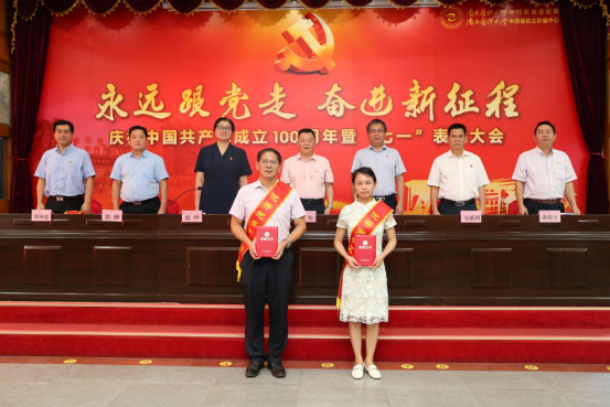 会上,严冬宣读了《中共南方医科大学委员会关于表彰优秀共产党员、优秀党务工作者和先进基层党组织的决定》。医院党委副书记皮玲宣读了《中共南方医科大学中西医结合医院委员会关于表彰优秀共产党员、优秀党务工作者和先进基层党组织的决定》。在雄壮的乐曲声中,医院党委委员为获奖者颁授奖章。