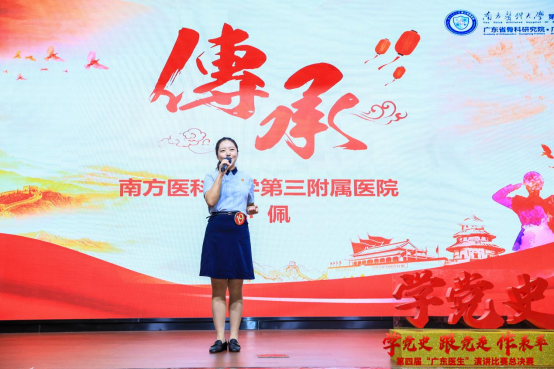 7月19日,广东省卫生健康系统“学党史 跟党走 做表率”广东医生系列主题活动之第四届“广东医生”演讲比赛总决赛举行。我校多家附属医院在演讲比赛中荣获奖项。本次总决赛由广东省卫生健康委、广东省中医药局主办,广东省卫生健康思想政治工作促进会、人之初杂志社、广东卫生在线共同承办。