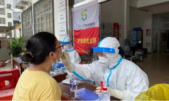 由于当天是星期天,许多医护人员休息,但是接到紧急通知后,大家毫不犹豫迅速集结。许多支部书记、支部委员、科室主任、护士长勇担重责,当先锋、做表率。儿科党支部书记刘金辉、心血管内科二区党支部书记陈刚、妇科党支部书记李婉玲、产科党支部书记何玉兰、呼吸内科党支部书记崔健、康复医学科党支部书记李辉、消化内科党支部书记刘发全、中医老年科党支部书记蒋家祥、普外肝胆乳腺科党支部书记张志,以及普外科主任王芝钧等支部书记和科室主任均积极响应医院党委号召,加入到队伍中。神经内科李彩琼、梁文婷、曹志豪,急诊医学科刘晋宇、管学莲、黄丽群、陆炳康、王次峰,消化内科莫志辉、王金婷、戚少泉、李彩银,老年医学科潘超,儿科邓忠红等医护人员下夜班后顾不上休息,直接参加核酸采集任务。