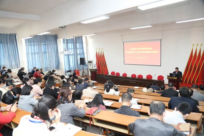 医院党委书记严冬传达学校动员会议精神并作学习贯彻党的十九届六中全会精神动员部署讲话。