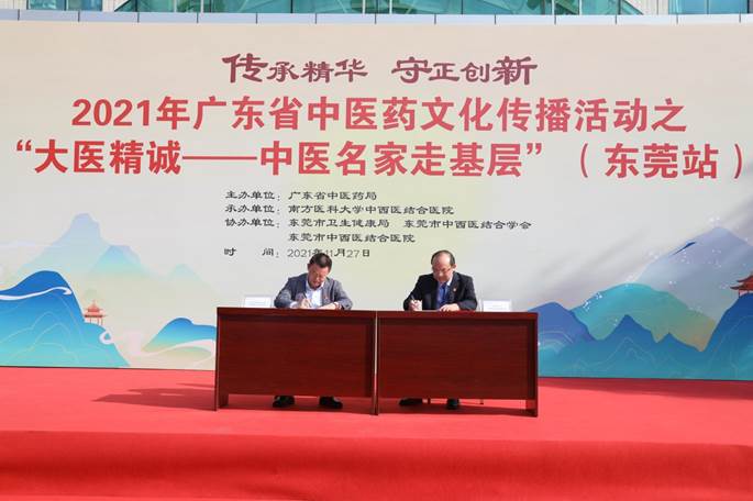 11月27日,2021年广东省中医药文化传播活动之“大医精诚——中医名家走基层”活动走进东莞,在东莞市中西医结合医院举行大型义诊、八段锦表演、专科联盟签约揭牌、《广东省中医药条例》宣讲、中医适宜技术推广培训等活动。