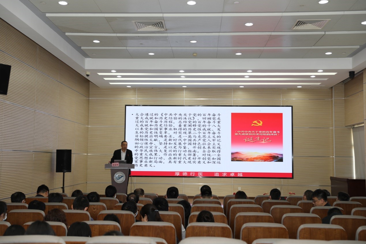 12月9午,南方医科大学皮肤病医院召开学习贯彻党的十九届六中全会精神专题宣讲会,邀请省委党校史党建部主任梁道刚作专题宣讲,医院党委班子成员、全体党员和来自农行天河支行,中行越秀支行和越秀消防大队等三家党建共建单位党员代表共100余人参加学习,会议由党委书记陈旭坚主持。