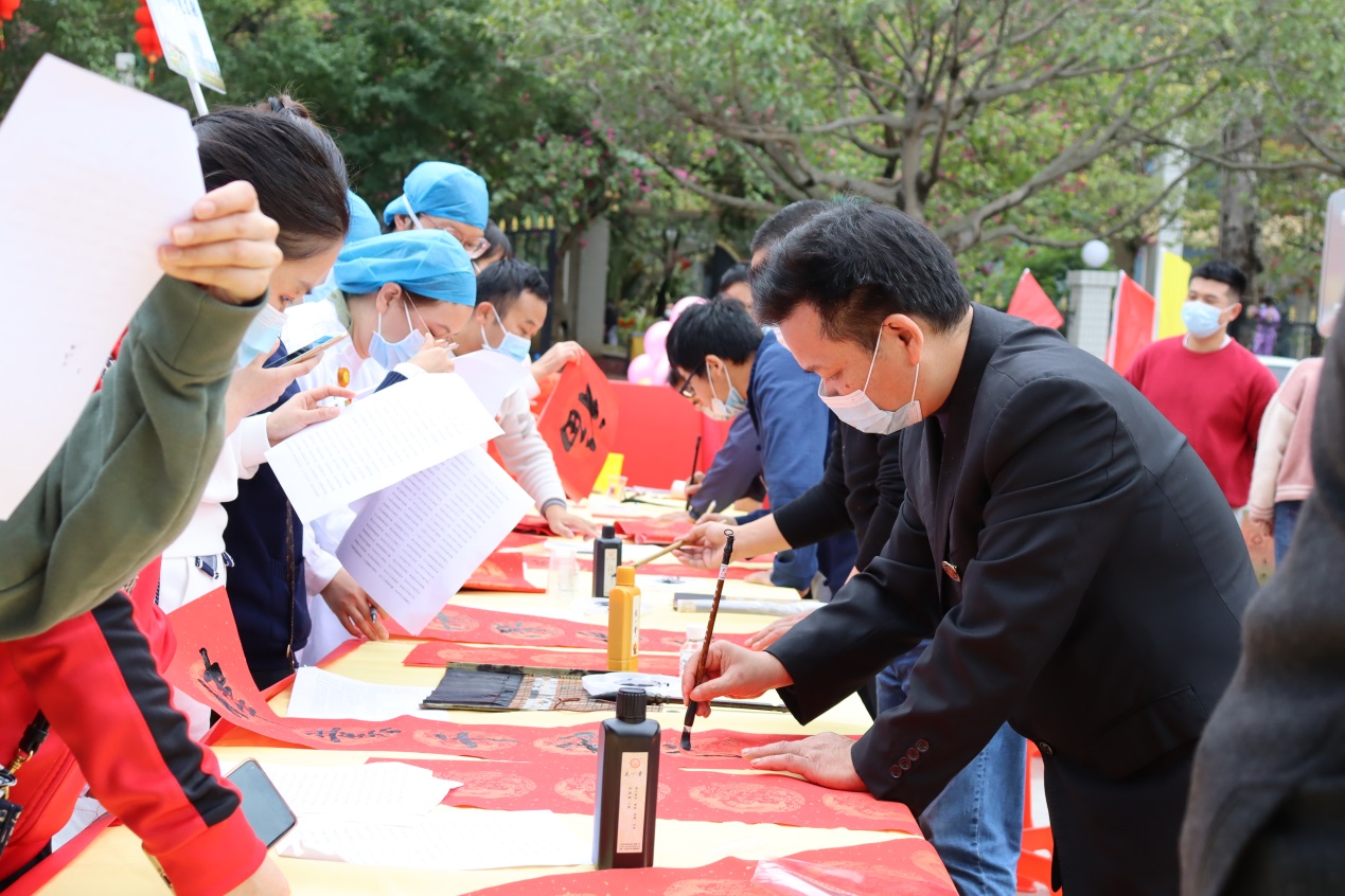 从化区文联还在活动现场开展“齐心抗疫”慰问医院一线医务工作者挥春送福活动,一幅幅吉祥如意的大红春联,散发着春的气息,或风雅有致,或遒劲有力,各种书体跃然纸上。这些写满新春祝福的春联和“福”字,带着浓浓的情谊和年味,为即将到来的春节增添喜庆氛围,让广大教职工感受到无比的暖心。