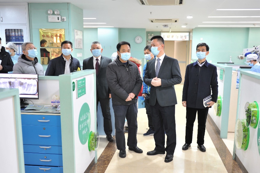 2月24日上午,海珠区委书记蔡澍一行8人莅临口腔医院调研指导。医院党委班子成员陪同调研,医院机关职能科室主任、副主任参加座谈。