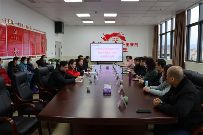 孙健介绍了五附院的基本情况、学科优势和对外帮扶工作。段琪、始兴县妇幼保健院院长官国浩分别介绍了始兴县和妇幼保健院的基本情况,以及当前发展面临的困难,希望五附院在医疗管理和专业技术方面给予支持。