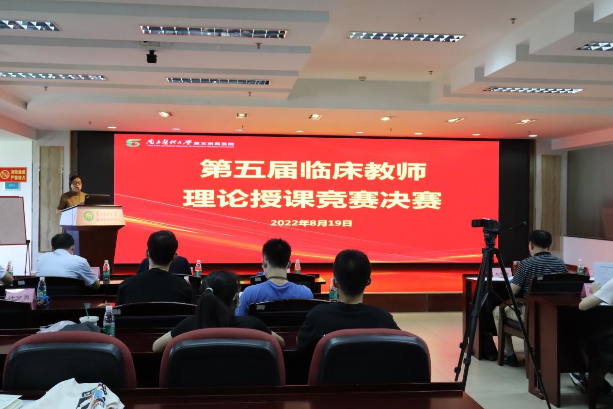 近日,南医五院第五届临床教师理论授课竞赛决赛在六楼大会议室举行,副院长徐晓武出席并主持活动。活动邀请了南方医科大学师资团上官辉教授、护理学院陈瑜教授、中医药学院杨路教授及南医五院营养科宋杰丽主任、中医科张绪富主任、介入血管外科邓保平主任等6位专家担任评委,另有5名学生评委。