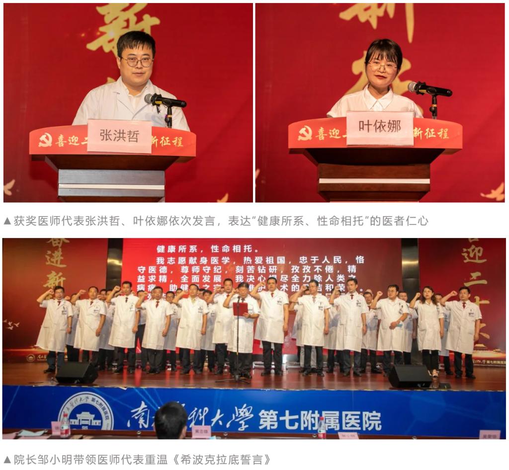 “每个医生都应做到孙思邈诠释的‘大医精诚’。”院长邹小明分享了南方七院医疗服务上的“精”与“诚”,点赞了广大医护人员为南海区、里水镇以及周边辖区的百姓提供优质医疗服务。他寄语道:”希望你们精于业,长练救人之术;诚于心,常怀怜悯之心;厚于德,长修为医之德。“