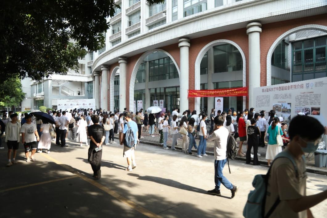 来自南方医科大学中西医结合医院针推康复科、肾病科、脾胃病科、治未病中心、骨伤科、心血管科、肿瘤科、妇科、特需医疗服务中心、风湿病科等科室专家参与义诊,其中妇科曾朝阳主任是刚下手术就马不停蹄赶往义诊现场。看到前来排队问诊的师生员工排着长队,为减少候诊时间,医院又临时增派2名专家前往支援,合计共14名专家参加义诊活动。据了解,本次活动共吸引了近800名师生前来问诊咨询。