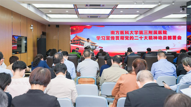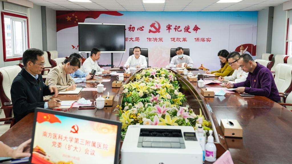 11月3日,第三附属医院召开党委(扩大)会议,传达学习党的二十大精神,专题研究医院学习宣传贯彻工作。会议由医院党委书记许明辉主持。会议审议通过了医院学习宣传贯彻党的二十大精神《通知》和《工作方案》,许明辉就学习宣传贯彻党的二十大精神动员部署会的有关安排作了强调。