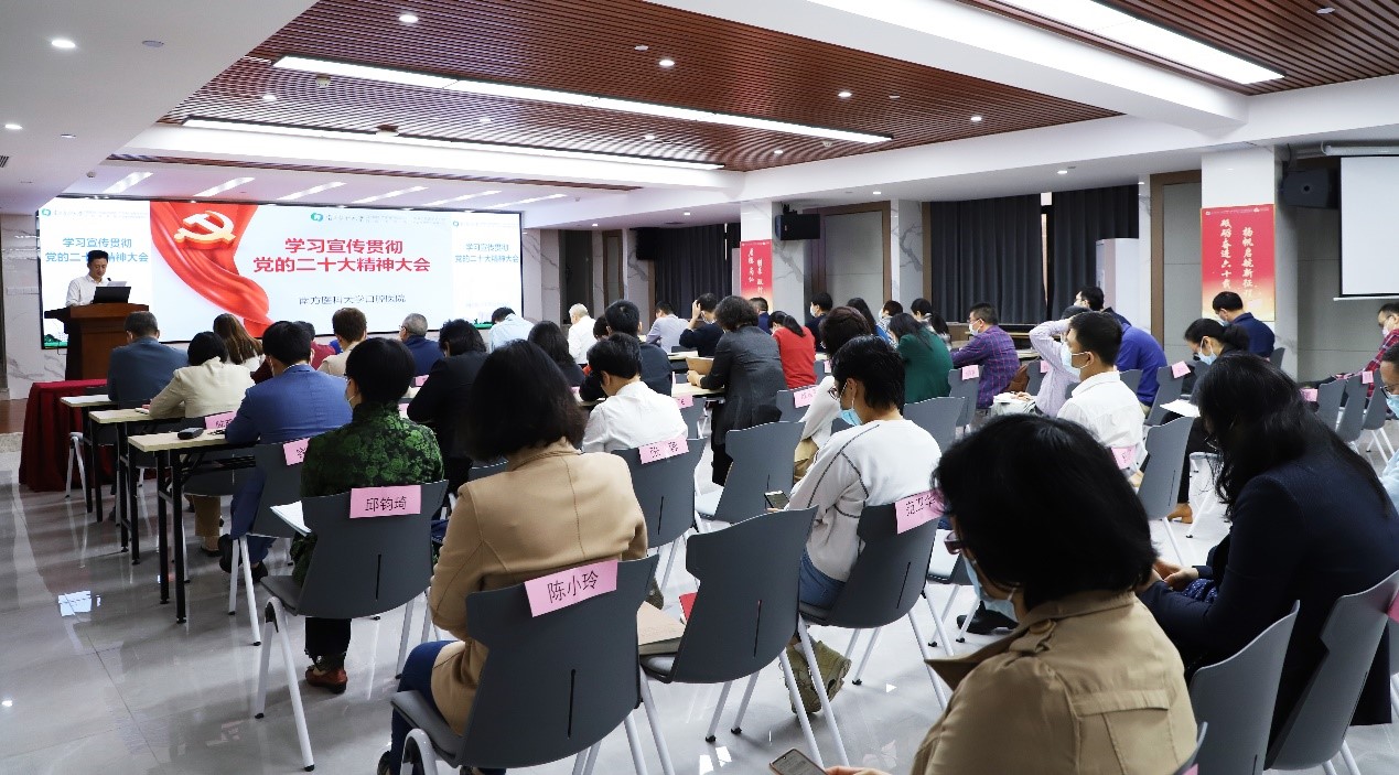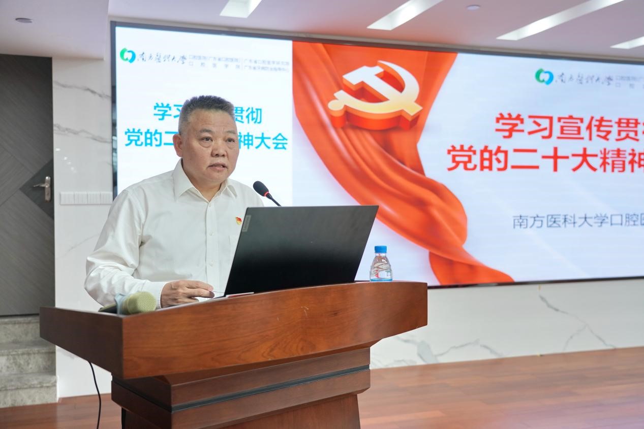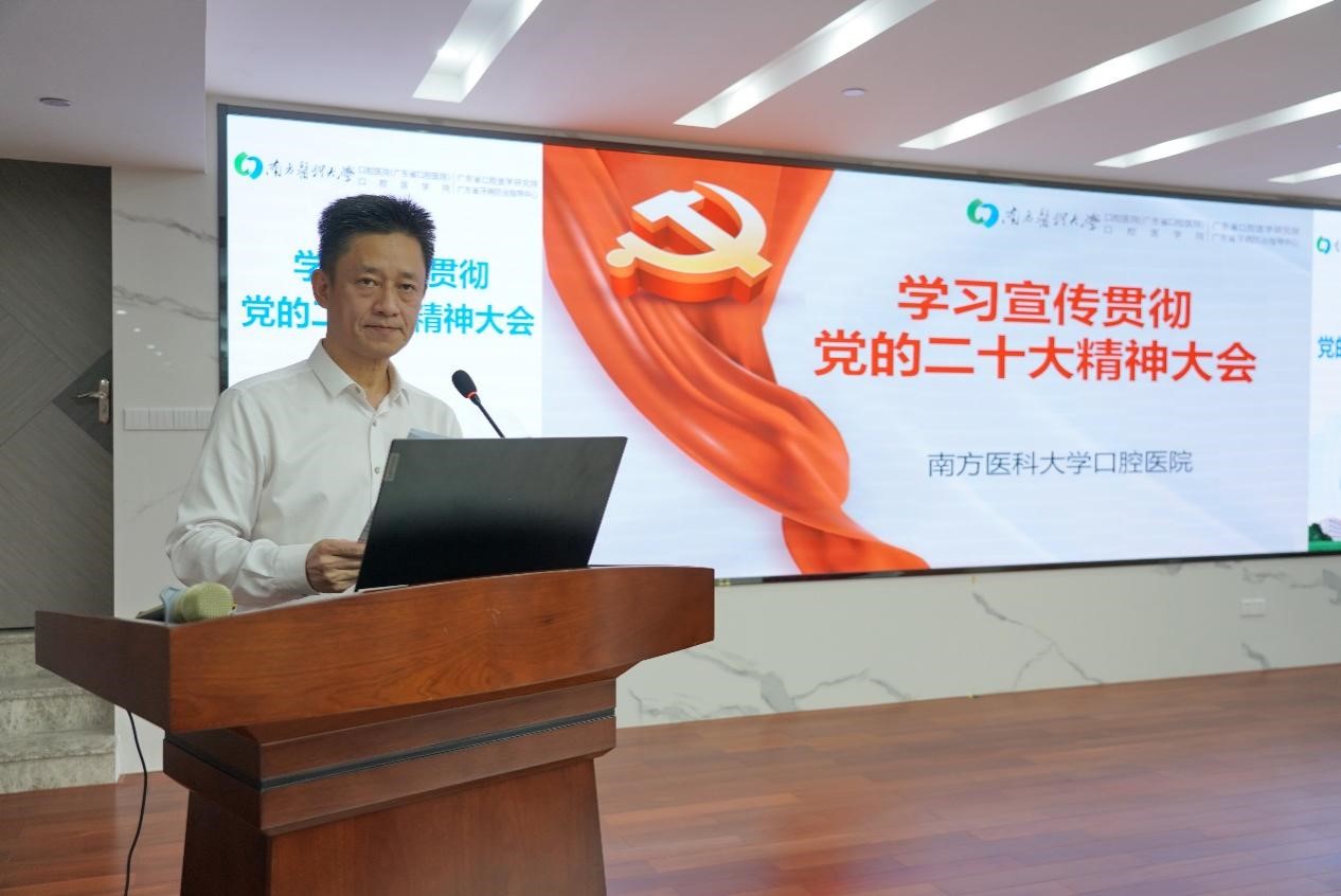 11月3日,口腔医院召开学习宣传贯彻党的二十大精神大会,会议认真学习贯彻中国共产党第二十次全国代表大会精神,传达省委、省委教育工委和学校党委有关会议精神,对医院学习宣传贯彻党的二十大精神具体工作进行动员部署。医院党委书记黄治才作动员讲话,医院党委副书记、院长黄少宏主持会议。医院领导班子成员,党(总)支部书记、科室负责人、党外代表人士及各类党员、学生代表在总院参会。各院区设视频会议分会场。