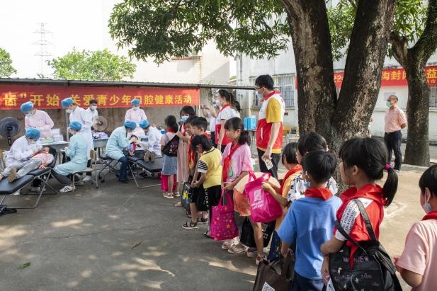 为认真贯彻落实《中国儿童发展纲要》,口腔医院微笑“童”行志愿者服务队,以“公益”为底色,以“健康”为特色,以“专业”为本色,通过常态化、制度化的运行,针对广东省山区儿童口腔健康问题,持续十余年在广东省21个地级市开展儿童口腔健康宣教、口腔健康检查、局部涂氟、窝沟封闭、对基层口腔专业人员的培训等活动,在打造一项精准扶持“爱心项目”;培育一支“带不走”的医疗团队;建设一条山区儿童“绿色通道”;推动基层牙病防治体系建设四个方面持续发力。不断提高山区儿童口腔健康保护意识,为推进健康乡村建设、构建新型城乡关系提供了坚实的健康保证。