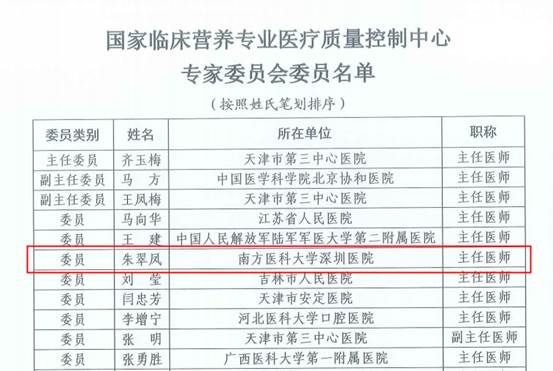 最近,国家卫生健康委发布了国家级医疗质量控制中心及其专家委员会委员名单,深圳医院副院长、神经内科主任刘亚杰当选国家神经系统疾病医疗质量控制中心专家委员会委员,营养科主任朱翠凤当选国家临床营养专业医疗质量控制中心专家委员会委员。深圳共有6名专家当选。