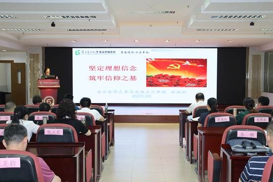 开班动员后,南方医科大学马克思主义学院院长任映红教授作题为《坚定理想信念,筑牢信仰之基》的专题辅导。她以主题教育总要求开篇,引述习近平总书记“增强党的自我净化、自我完善、自我革新、自我提高能力”讲话内容,围绕如何把牢理想信念“总开关”,结合生动鲜活的具体案例,阐述了理想、信念、信仰释义,中国共产党人的理想信念信仰,理想信念信仰缺失的危害和成因,加强理想信念教育筑牢信仰之基等四方面内容。