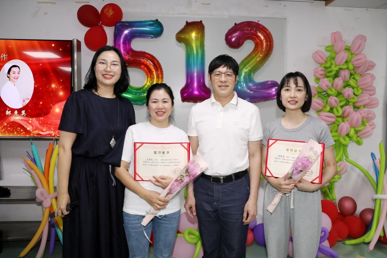 行政办公室蔡秋云副科长为获得“优秀带教老师”的黄晓红和高小翠颁奖。