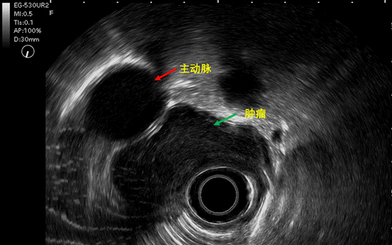 超声内镜是内镜中的望远镜,既有内镜检查的直观性,又有超声检查的穿透性,可以穿透肠壁看到远处,结果显示,可能是平滑肌瘤。随后的CT检查也显示,大概率是良性。