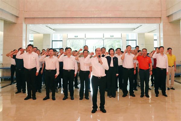 面对鲜红的党旗,医院党委书记苏广武带领全体人员庄严重温了入党誓词,在铿锵誓言中坚定理想信念、砥砺初心使命、锤炼党性修养。