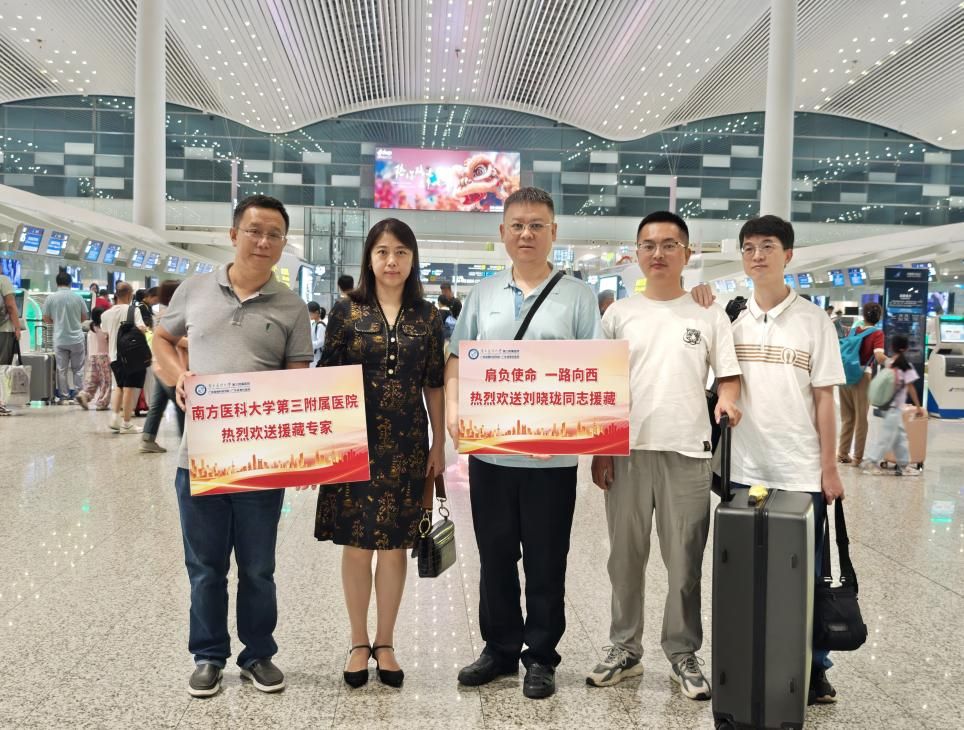 近日,按照省委组织部、省卫生健康委和学校党委统一安排,第三附属医院脊柱外科二科程亮、麻醉科梁青春和普通外科刘晓珑先后启程奔赴雪域高原,开展医疗帮扶工作。其中,刘晓珑是该院首次选派至林芝市波密县开展帮扶工作的援藏专家;程亮在完成为期一年的柔性援藏工作后,因表现优异,继续留任一年,参与“组团式”援藏工作。医院领导,党委办公室、医务科和相关临床科室人员前往机场送行。