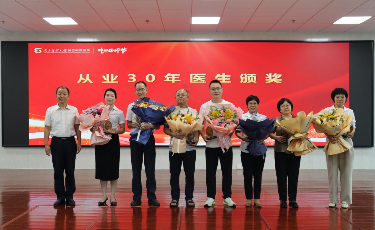 8月19日下午,第五附属医院举行2024年“中国医师节”表彰大会。医院全体院领导班子,管理职能部门负责人,各科室主任、护士长、党支部书记、科室代表及受表彰人员参加了会议。