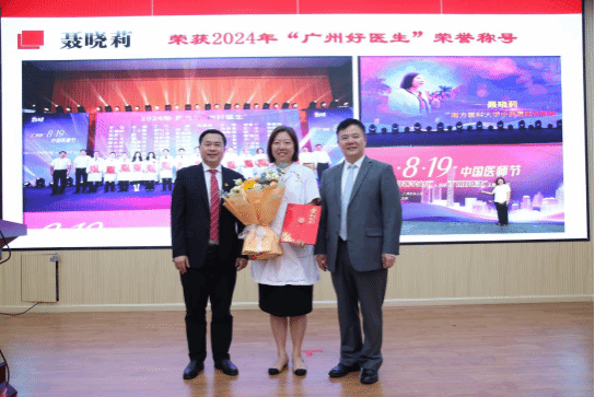 院领导及颁奖嘉宾为受表彰的个人颁发荣誉证书和纪念品,并对被评为“广州好医生”的聂晓莉表示祝贺。