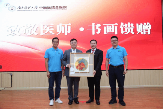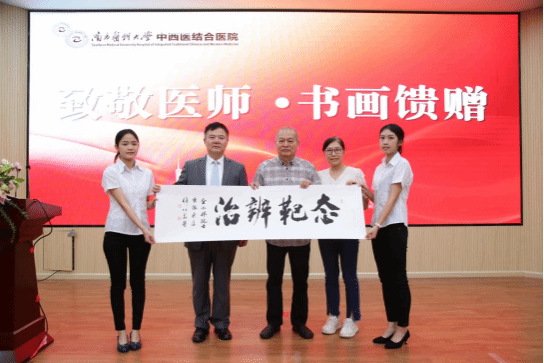 表彰会上,还开展了别开生面的翰墨丹青礼。广东省老干部书画诗词摄影家协会会长、广东省文联艺术馆原馆长陈俊生将一幅幅“私人定制”的书法作品作为医师节礼物赠送给优秀医师代表们,“医师,是一个崇高的职业,医务工作者们舍小家为大家的精神值得全社会学习和尊重。”陈俊生作为老艺术家,表达了对医务工作者的敬意与祝福。
