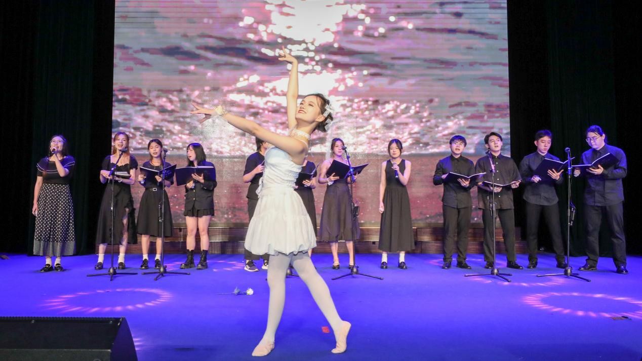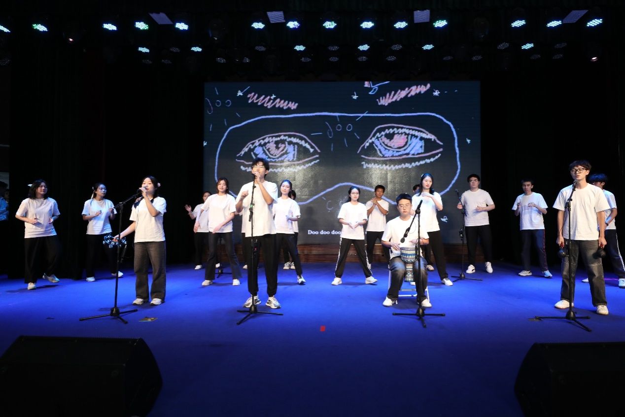 7支中外学生战队以抽签顺序轮番献艺。THE PHOENIX CHORALE队以《明天会更好》与《STORM IS OVER NOW》的中西和鸣率先破冰,汉语的温润与英语的铿锵在旋律中达成奇妙平衡。Melody Fusion 队以《我爱你中国》的深情与《RISE UP》的激昂,唱出来华学子对“第二故乡”的炽热情感。“麦旋风-狂动物城”组合将《风吹麦浪》的田园诗意与《TRY EVERYTHING》的冒险活力巧妙融合,展现当代青年的多元面貌。N.P.C.战队通过《如愿》的传统韵味与《HAPPY》的现代律动碰撞,演绎出中外文化的水乳交融。“微芒与共”队以《世界赠与我的》的东方哲思对话《SOMETHING JUST LIKE THIS》的西方流行,实验性编曲探索着文明互鉴的无限可能。校合唱团用《心墙》的细腻与《A THOUSAND YEARS》的恢宏,为音乐会编织出跨越时空的艺术画卷。