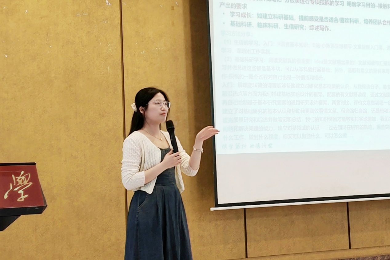 综测绩点排名第一、保研至北京大学第一医院肾内科(直博)的黄文谊,围绕课程学习、科研训练、英语学习、社团活动等方面展开分享。她认为,学习是长期积累的过程,无需因一时得失而焦虑。关键在于做好规划与复盘,专注于真正的自我提升。