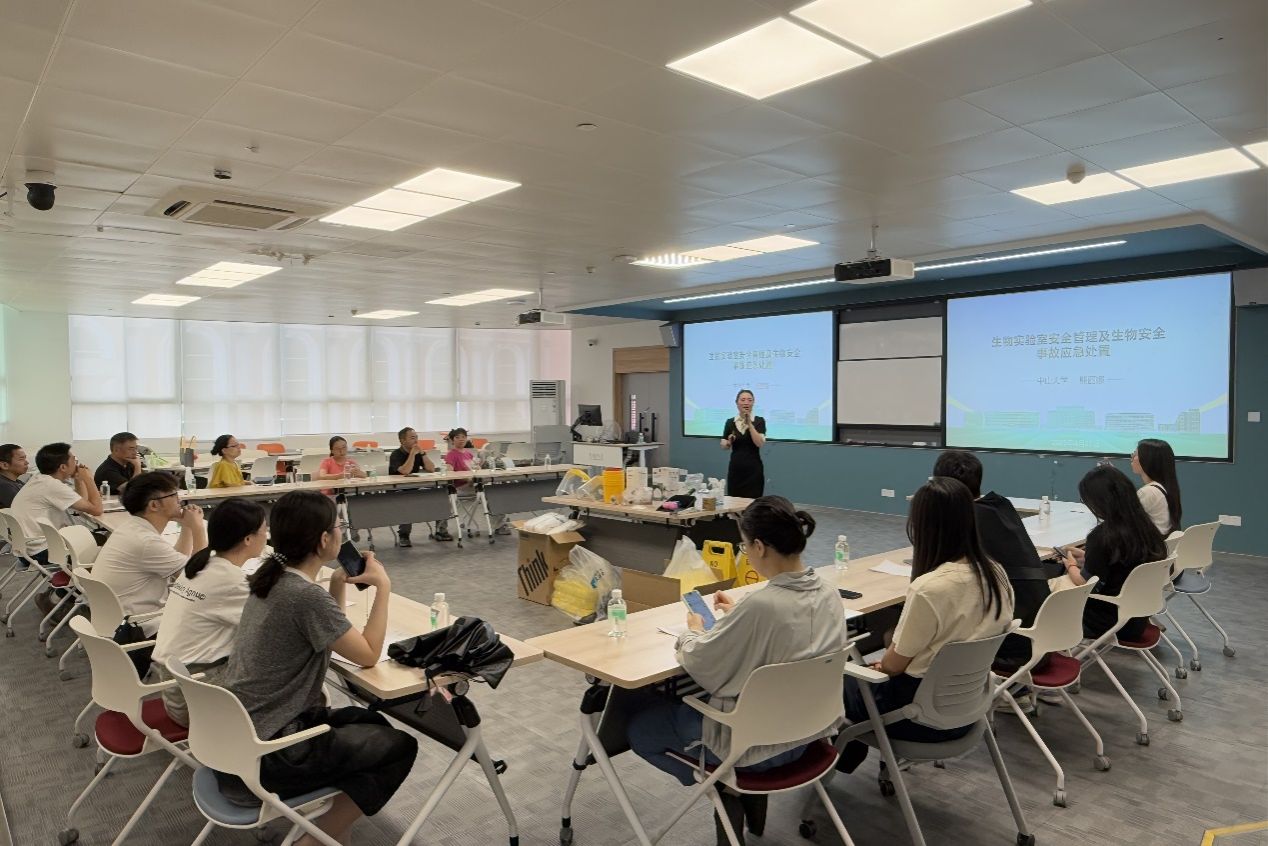 在病原微生物实验室安全专题培训及实战演练活动中,中山大学教师熊丽娜紧扣《中华人民共和国生物安全法》要求,系统讲解了实验室分级标准、风险评估及应急处置流程,并结合实际案例深刻阐述了规范操作的重要性。在实战演练环节,重点指导了防护用品的规范穿戴,并模拟了病原微生物泄漏场景,组织参训人员进行了应急响应与规范消杀流程的实操训练。通过“理论+实操”的沉浸式教学模式,显著提升了参训人员的生物安全防护技能与突发事件处置能力。