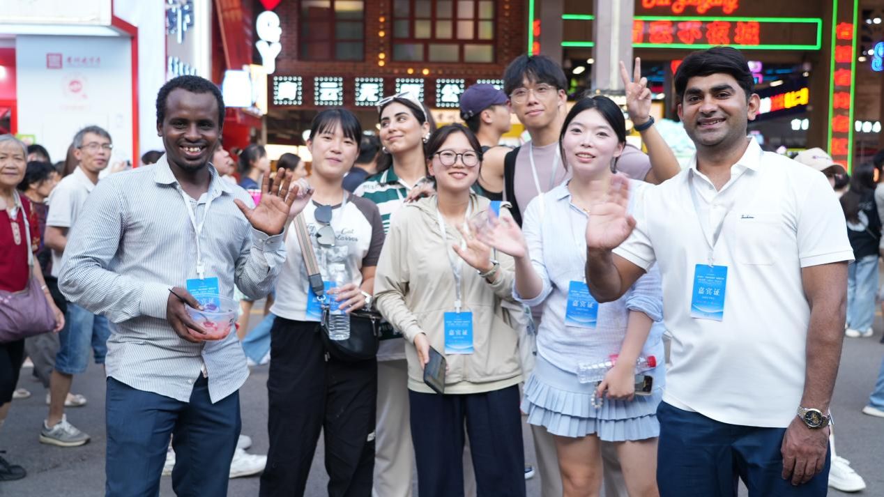 夜幕下的贵阳city walk,让学子们走进市井生活。街头的酸汤鱼香气、夜市里的热闹叫卖,让留学生们更直观地感受这座城市的活力,彼此的距离在分享美食的笑声中悄然拉近。