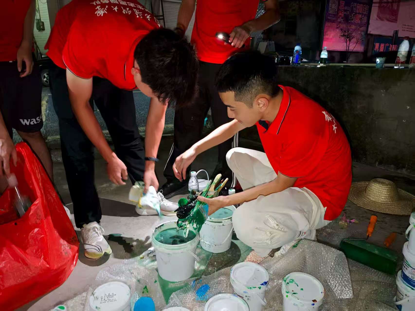 当晚,随着“青山绿水间”、“新乡村画卷”灵秀字体的最后一笔完成,以及“聚焦‘百千万工程’,助力高质量发展”标语的落笔,第一面“生态画卷”主题墙绘宣告完工,第二面“人文五华”墙绘五华特色产品部分随即开工。