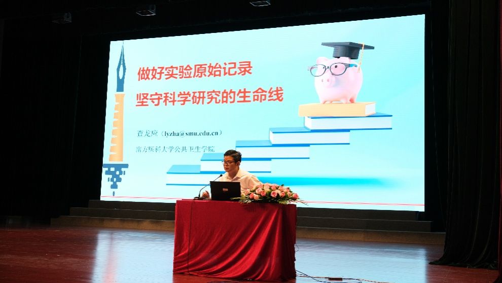 公共卫生学院教授查龙应以“做好实验原始记录,坚守科学研究的生命线”为主题,阐述了科研实验原始记录的重要意义和常见主要问题,并对科研实验原始记录规范进行了详细解读,教导同学们认真、规范的做好实验记录,走好科研生涯的第一步。