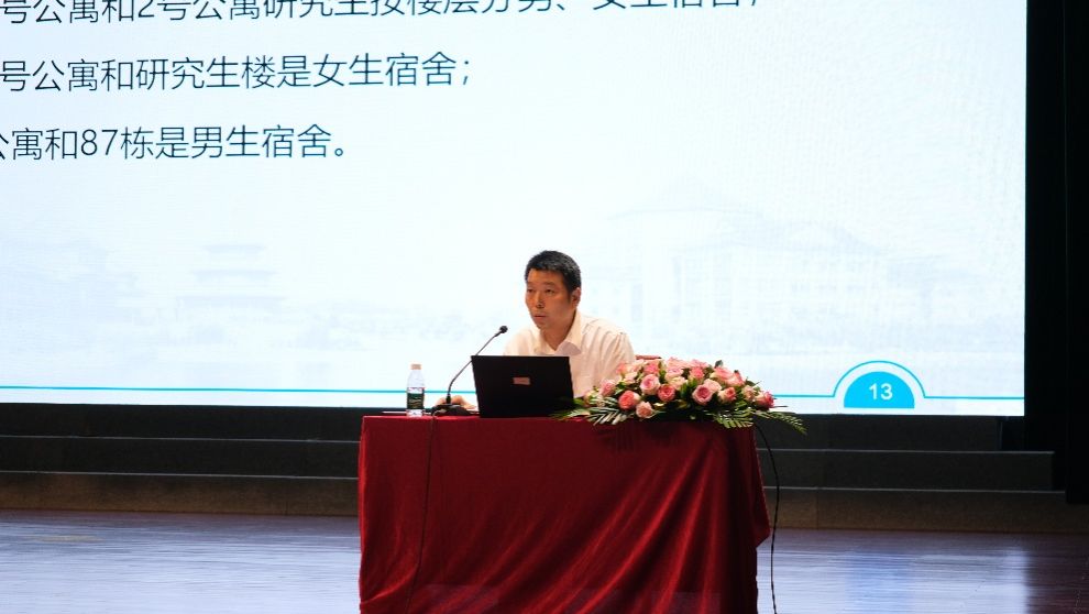 总务处处长刘克荣以校园生活主题教育为主题,向同学们介绍了总务处概况,并对后勤保障遇到的常见热点问题进行了现场回应,倡导同学们遵守宿舍管理相关规定,营造良好生活环境。