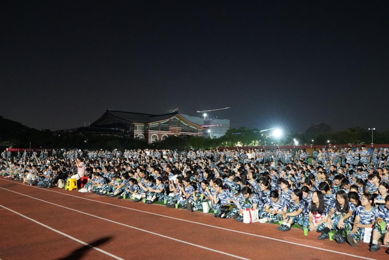 随后,军训汇演在秋夜的星光与灯光下启幕。近三千名新生与教官围拢舞台,或席地而坐,或倚栏远眺,等待这场青春与传承的邂逅。