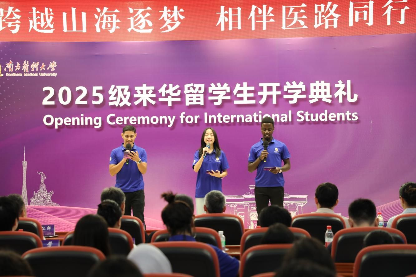 来自印度的硕士研究生新生代表EVAN NOEL DYMPEP(爱文),来自泰国的本科生新生代表JINTAKANON NARA(娜拉),来自乌干达的援外公共卫生硕士研究生新生代表KAIJA KEVIN JOEL(凯佳)联袂登台,共叙求学南医的初心与憧憬。他们怀揣着“精于术,归于心”的从医理念,立志在南医夯实专业根基,提升中文能力,深植人文关怀,以医学为桥梁,践行服务全球健康的共同理想。