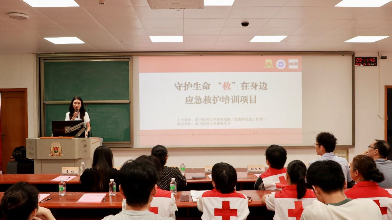 研究生院党委书记、党委研究生工作部部长张原英作为红十字救护员持证人,以自身经历勉励参训师生要心存敬畏,珍惜机会,以“空杯心态”重温基本功,以“学徒身份”锤炼实操技能,以“医者担当”传播安全理念,认真学习、熟练掌握应急救护各项技能,为全面提升社会应急救护能力贡献南医力量。