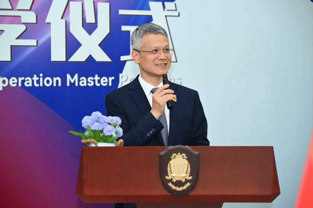 在2025级国际合作(中葡、中英)硕士项目开学仪式上,学校副校长许可慰强调,国际合作硕士项目聚焦于复合型国际化人才的培养。他鼓励同学们秉承 “博学笃行,尚德济世” 的校训,“脚踏实地追求卓越”“拥抱多元拓展视野”“不忘初心服务社会”。他希望同学们通过研究生阶段的学习,在医学道路上扬帆远航、追求卓越,为促进中国乃至全球健康与医学事业发展不懈努力。