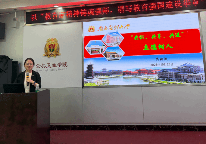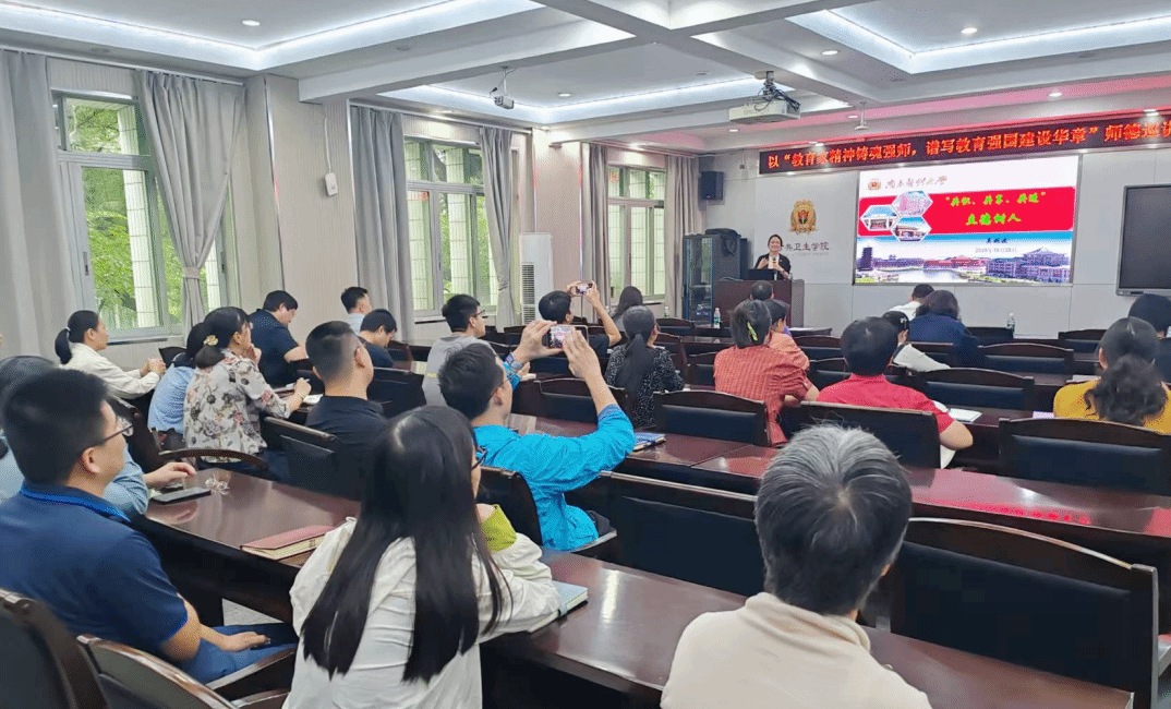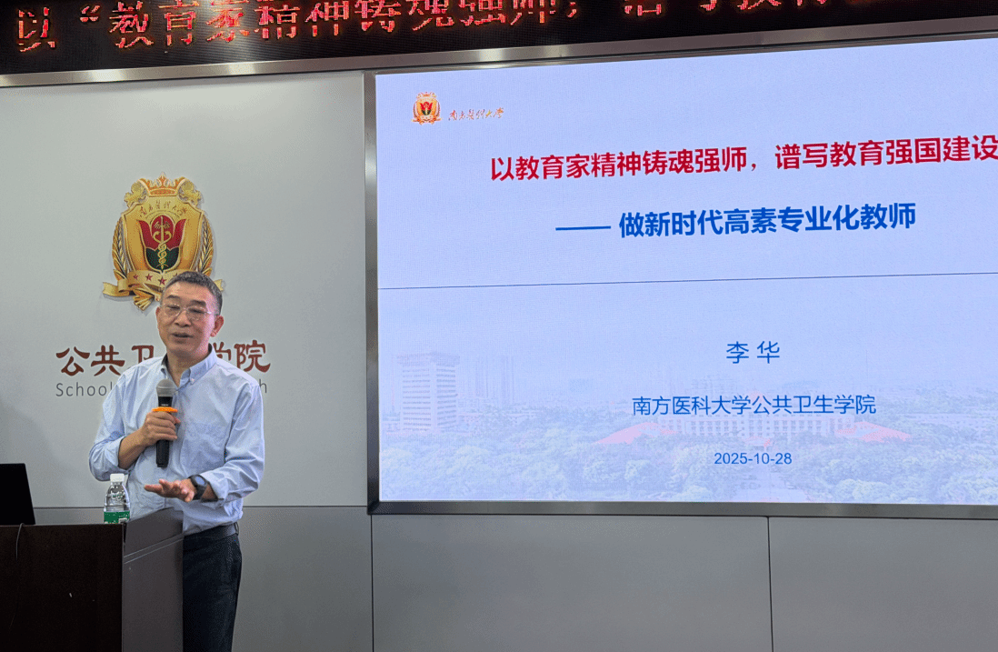 10月28日,公共卫生学院开展师德主题巡讲活动,特邀2025年“南粤优秀教师”荣誉称号获得者李华、吴娴波两位教授担任主讲。本次巡讲既是落实上级关于教师队伍建设改革的决策部署,也是为全院教师搭建学习交流的平台。