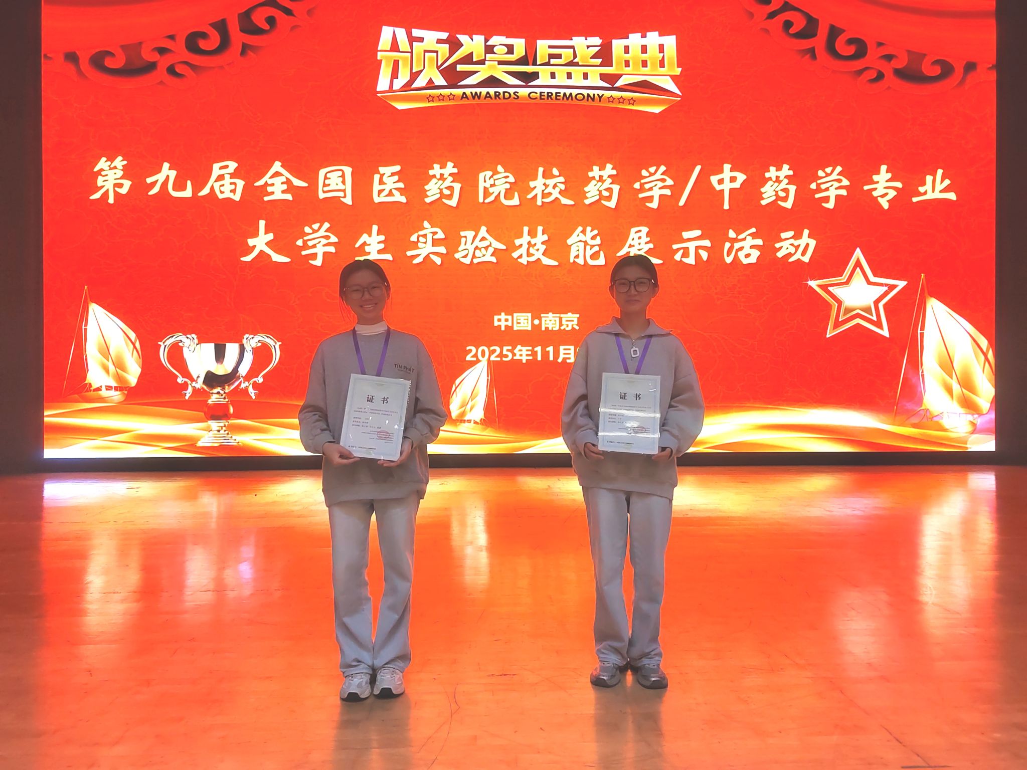 11月7日至10日,第九届全国医药院校药学/中药学专业大学生实验技能展示活动上,我校药学院2022级药学(创新班)本科生王芹获特等奖、陈梓烨获二等奖。来自北京大学、复旦大学、上海交通大学、四川大学、浙江大学、中山大学等161所高校900余名师生参与了此次活动,大赛规模再创新高,彰显了全国药学教育领域的广泛影响力。