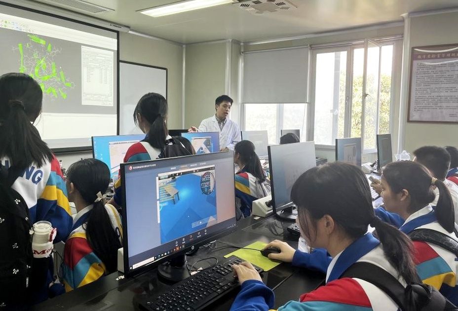 在药学院,同学们分批参观了学院文化墙、实验中心和GMP虚拟仿真项目,老师们的系统讲解与现场演示层层递进,引导同学们从认知、理解到体验,有效激发了他们对药学领域的探索热情。