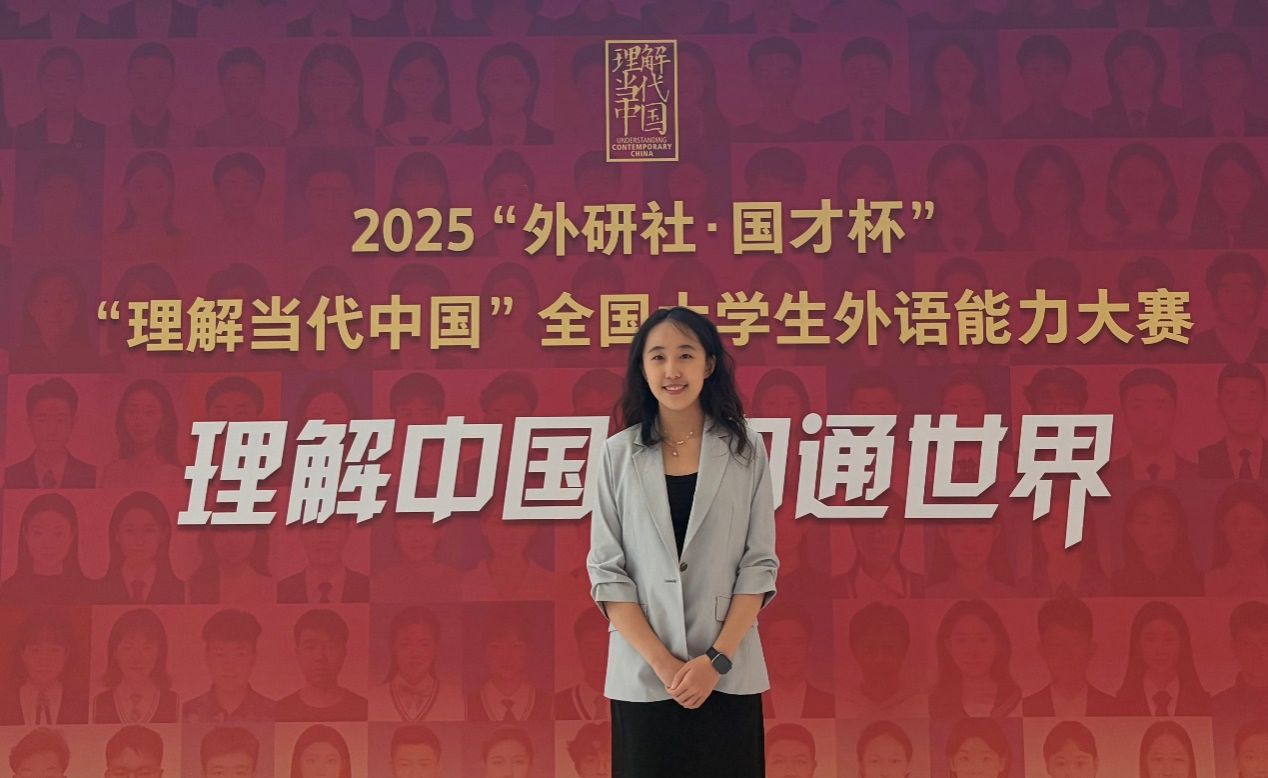 近日,在2025 “外研社·国才杯”“理解当代中国”全国大学生外语能力大赛全国总决赛上,我校外国语学院张心玥在口译赛项中斩获银奖,李靖婕(短视频赛项)、李菁蕾与谢雨坤(国际传播能力赛项)分别夺得铜奖。