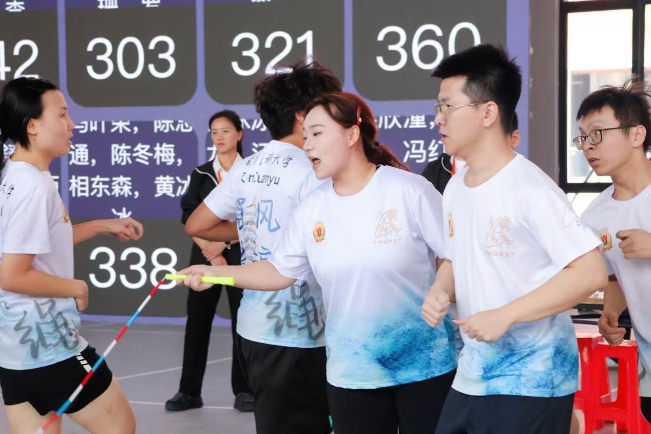 赛场上,每一次轻盈的跳跃,都凝聚着队员们日复一日训练的汗水与咬牙坚持的努力;每一次手腕轻转带动跳绳摇荡,都在空中勾勒出一道道灵动优美的弧线。跳绳划破空气的“嗖嗖”声与观众此起彼伏的呐喊助威声交织共振,谱写出南医学子蓬勃昂扬的活力乐章;花样跳绳赛中,动感悠扬的音乐节拍与队员们行云流水的花样技巧完美契合,跨步跳、交叉摇、双人同步翻转…… 一个个高难度动作无缝衔接,绳起绳落间,队员们的身影矫健利落,笑意明亮灿烂,淋展示着独属于青春的无限美好与蓬勃力。