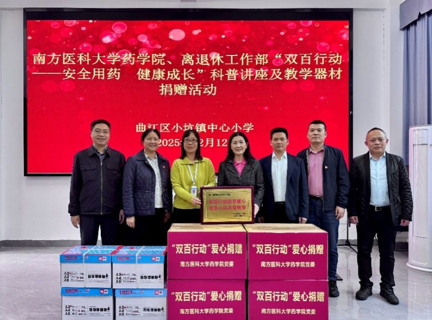 12月12日,药学院联合党委离退休工作部,赴韶关曲江开展“双百行动”暨党建活动,通过爱心捐赠、健康科普、基层调研、老党员慰问及红色教育等多元化形式,将专业资源与红色精神深度融合,为乡村振兴注入新动能。