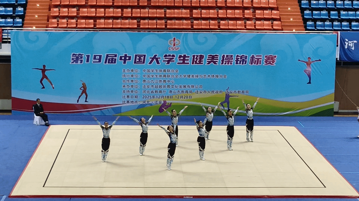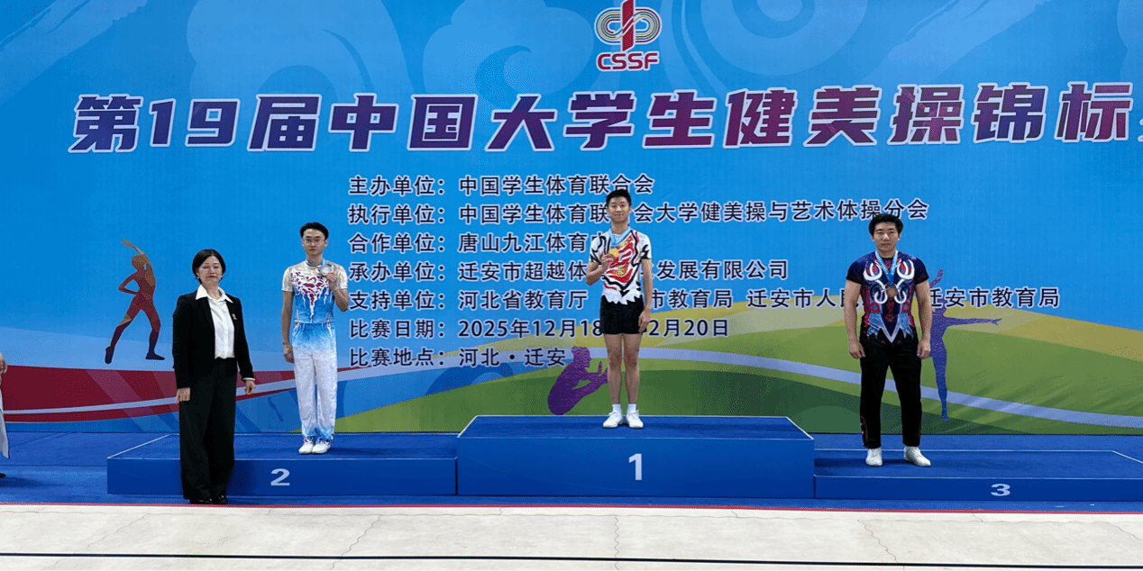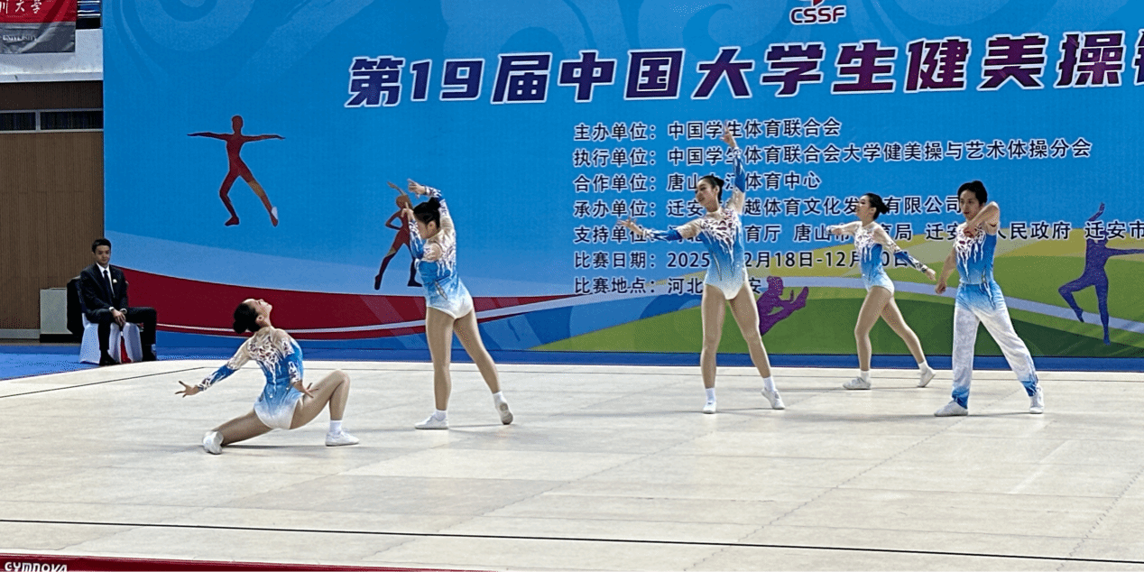 12月18日-20日,2025年第19届中国大学生健美操锦标赛上,我校健美操队以卓越表现闪耀赛场,从全国69所高校、735名运动员中脱颖而出,斩获1金3银2铜的优异成绩,并荣膺团体总分第二名,同时荣获“体育道德风尚奖”,主教练李宣达获评“全国优秀教练员”,实现竞技成绩与精神文明双丰收。