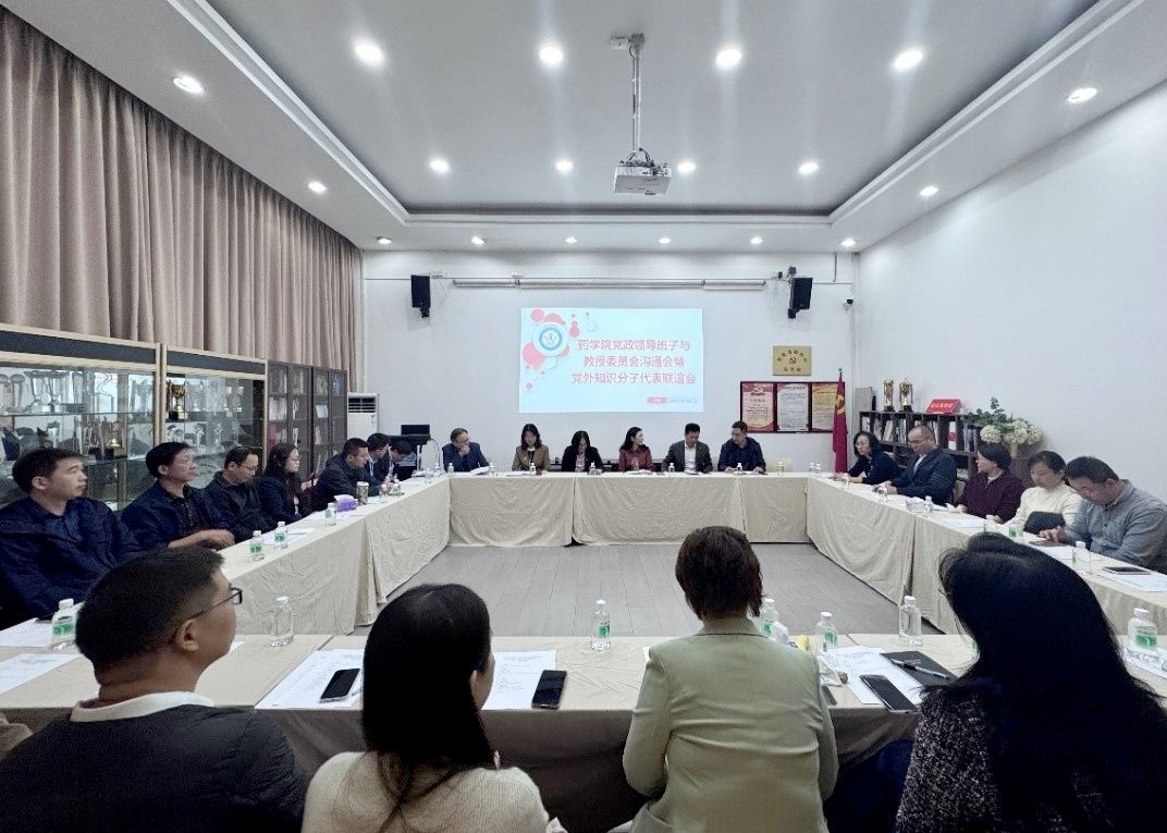 述职大会后,学院召开党政领导班子与教授委员会沟通会暨党外知识分子代表联谊会。近年来,药学院始终重视发挥教授委员会与党外知识分子在教育教学、学科建设、科学研究、人才培养等领域的智库功能和民主决策作用。