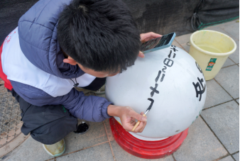 与此同时,团队还开展了石墩美化行动。成员们运用经典书法匠心题字,为绘有二十四节气纹样的石墩标注日期。这一举措让承载中华文脉的优秀传统文化浸润村民日常、融入乡村肌理,为乡镇文化建设厚植文化沃土,筑牢精神文化根基。