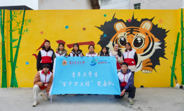 寒潮来袭,团队成员们坚持挥毫作画,他们将憨态可掬的华南虎与苍翠挺拔的毛竹巧妙融合,绘制成一幅生动有趣的墙绘作品。这幅墙绘不仅彰显了长江镇作为生态名片的独特魅力,更传递出人与自然和谐共生的美好愿景。原本素净单调的墙面,在团队的精心创作下,蜕变为长江镇新晋特色打卡点,生动展现出当地的生态底色,彰显了青年学子不畏艰辛、躬身实干的热血担当。