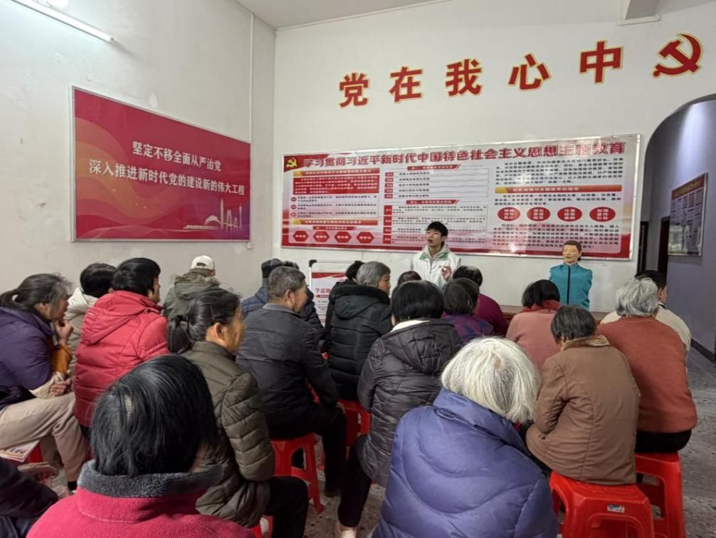 在维西村村委活动室,一场专为老年群体定制的银发健康讲座如期开讲。团队成员结合当地老人高发的高血压、糖尿病等慢性病,以“拉家常”的方式讲解冬季保健、安全用药常识,针对老人易摔倒的问题,现场演示“缓慢起身”“摔倒护头”等自救动作,手把手指导村民练习。