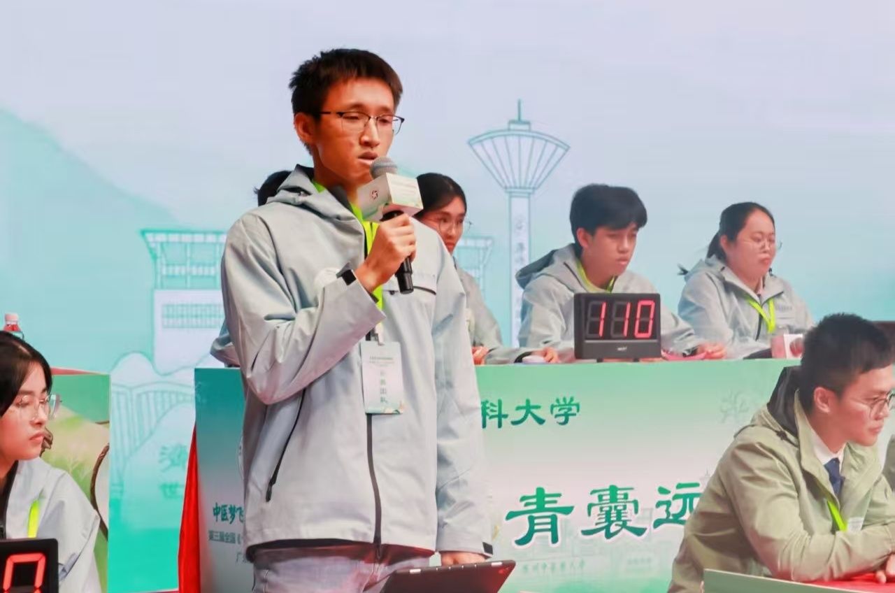 去年11月举行的广东省赛区决赛中,面对来自全省高校和医院的14支强队,我校“悬壶济世队”与“青囊远志队”便崭露头角,双双荣获季军,携手拿到通往南部赛区的入场券。在随后的区域赛备战中,两队成员更是焚膏继晷,深耕《内经》条文,反复打磨团队配合,在高手云集的区域赛中,我校学子沉着应战,在抢答环节反应敏捷,在猜词环节默契无间,在论述环节阐释条理清晰,充分展现了扎实的理论功底与全面的综合素养。最终实现突破,分别以一等奖和二等奖的优异成绩,会师全国总决赛。